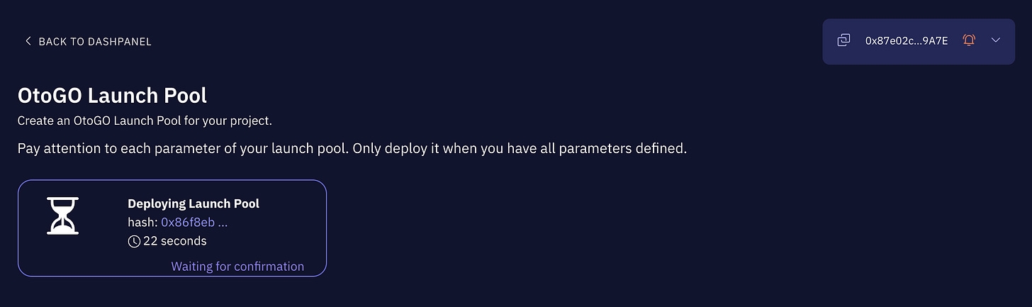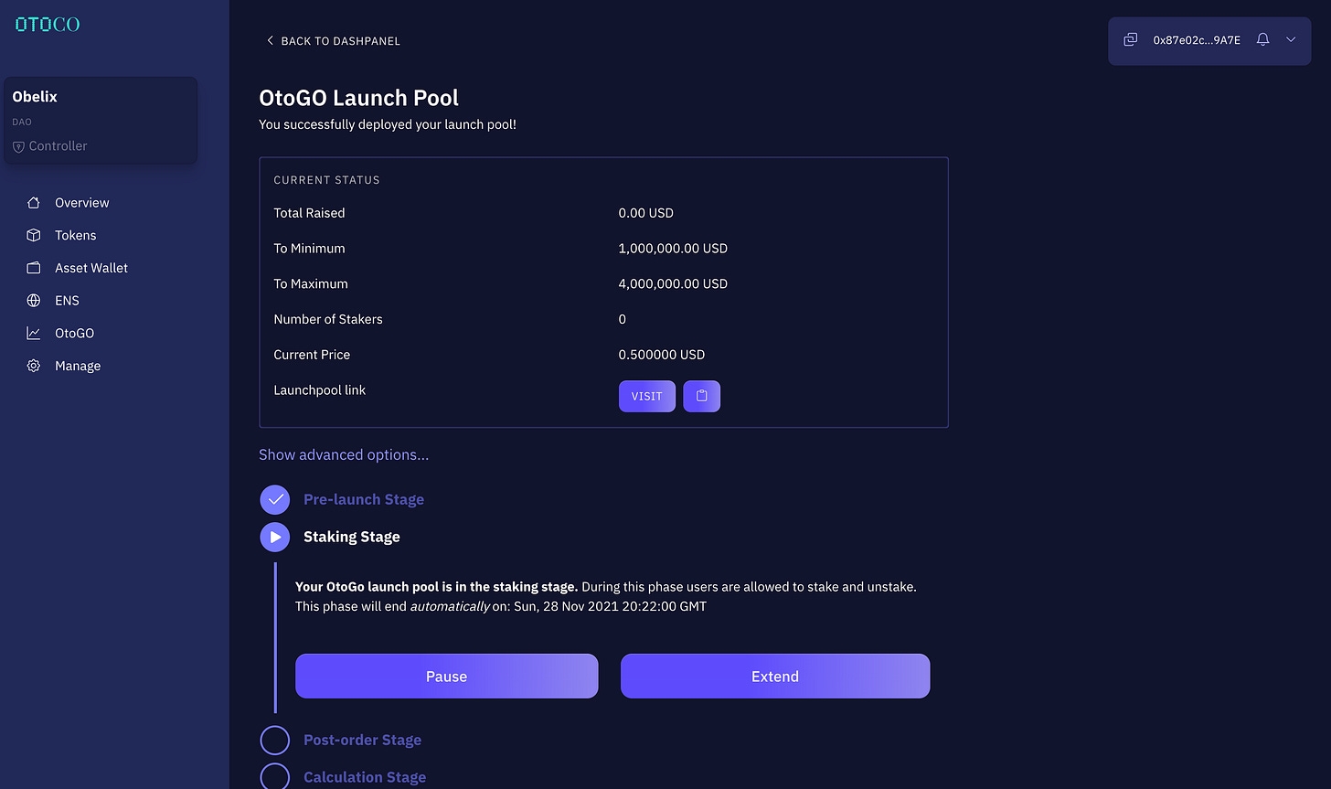 Once the above transaction confirms, you will be able to manage your launchpool’s lifecycle.