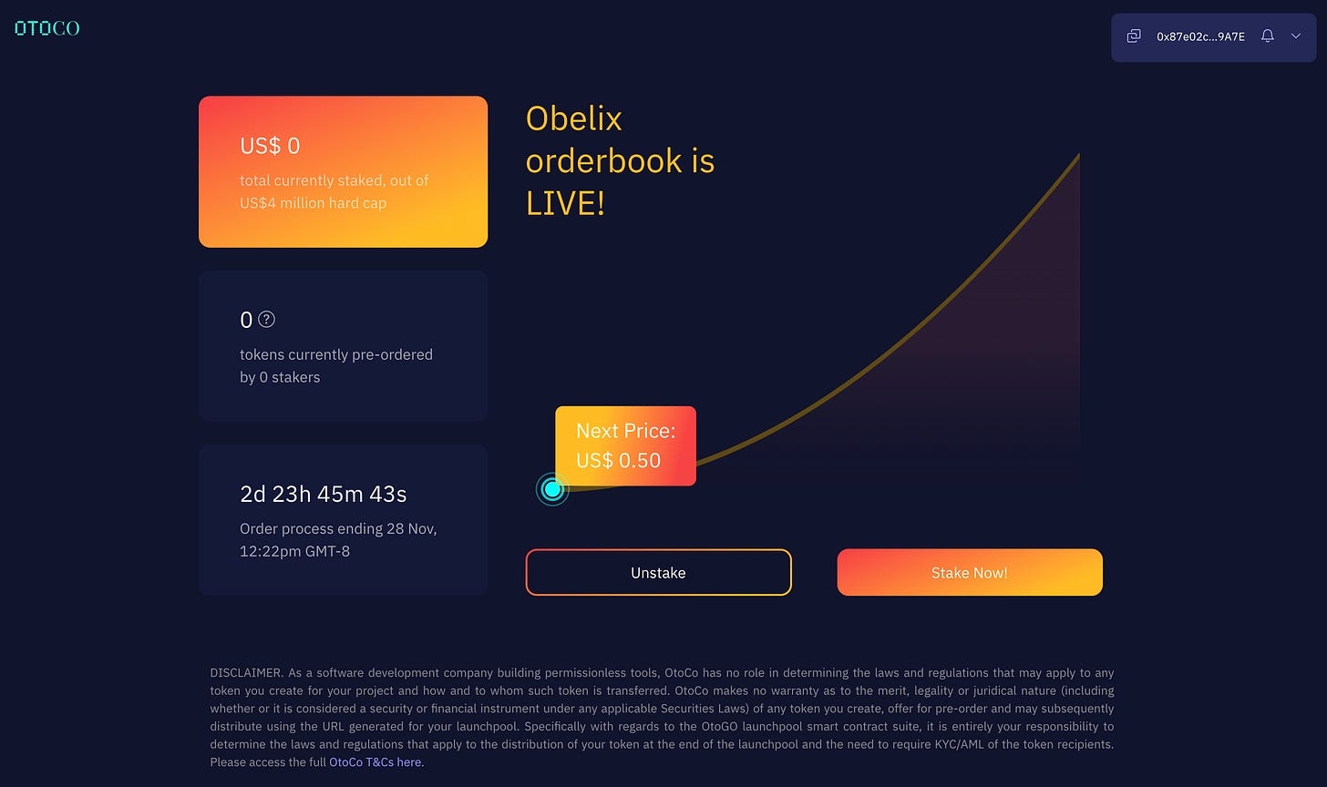 With this in mind, OtoCo makes no warranty as to the merit, legality or juridical nature of the token distributed via its OtoGO launchpool product, including whether it is considered a security or financial instrument under any applicable securities laws.